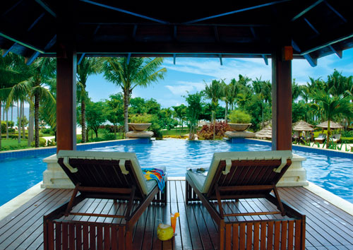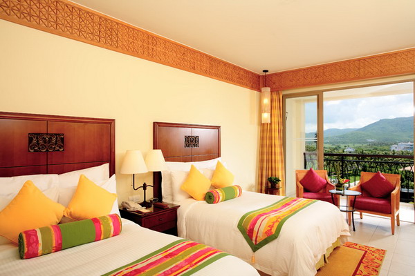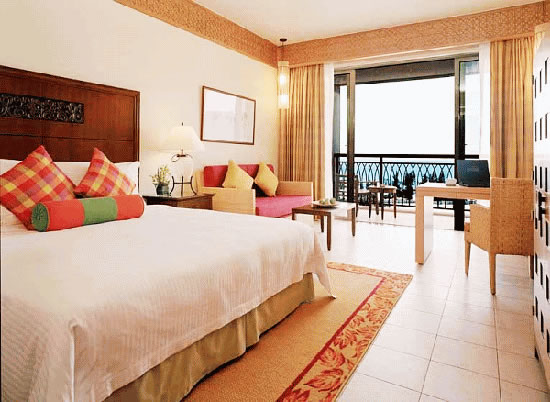 三亞萬豪度假酒店由世界知名公司W(wǎng)ilson & Associates設(shè)計。來自新加坡的設(shè)計師大膽自由的采用天然原石與暖色調(diào)木質(zhì)材料,結(jié)合當(dāng)?shù)孛匀说淖匀伙L(fēng)景和質(zhì)樸的風(fēng)土人情襯托出其自然、時尚的獨特風(fēng)格。酒店絕大部分客房均設(shè)有特大觀景陽臺,將潔白細(xì)軟的海灘、景色怡人的園林、優(yōu)美的山光水色、高爾夫球場景致一覽無遺?头績(nèi)部裝修舒適溫馨,從房間設(shè)施到小物品擺設(shè)都將感受到三亞萬豪度假酒店用“心”之處。三亞萬豪度假酒店引以為傲的水療中心“泉”座落在一片寧靜的園林中。五座相對獨立的豪華水療閣,透過花園更能遠(yuǎn)眺美麗的南中國海景。精心準(zhǔn)備的療程項目包括美顏護(hù)理、身體理療、按摩護(hù)理和精選水療套裝,為您從內(nèi)至外打造煥然一新的感覺。美酒佳肴在三亞萬豪度假酒店更是隨處可見。萬豪軒中餐廳傳統(tǒng)精篆的中式佳肴;全新江戶銀日餐廳舒適柔和的色彩與傳統(tǒng)的日式裝修風(fēng)格相得益彰,寬敞的座位空間營造舒適的就餐環(huán)境。伴隨著優(yōu)雅的日式音樂,品嘗具有現(xiàn)代感的日式美食,開放獨立的特色專區(qū)為您展示日式美食的制作過程;萬豪咖啡廳豐富的中西零點菜單和美味的自助餐;海韻風(fēng)情吧清涼飲料和迷人海景給予味覺和視覺無限享受。每間餐廳和酒吧都能滿足您挑剔的胃口。偏愛戶外的朋友也無需擔(dān)心,因為所有餐廳設(shè)有戶外雅座,讓您在享受美食的同時感受微微海風(fēng)的輕拂。得天獨厚的自然環(huán)境,令人垂涎的美酒佳肴,多姿多彩的娛樂活動,加上完善的會議設(shè)施,三亞萬豪度假酒店迅速成為舉辦各種活動和商務(wù)會議的最佳場所。擁有11間會議室,總面積達(dá)1250平方米。無柱豪華宴會廳,可分隔成五部分,另外六間會議室滿足中小型商務(wù)會議需求。高素質(zhì)的會議統(tǒng)籌隊伍,熱情悉心的宴會服務(wù),為會議圓滿召開提供最佳保障。親臨亞龍灣領(lǐng)略“天下第一灣”真正魅力所在,親臨三亞萬豪度假酒店體驗夢寐以求的悠閑假期。
