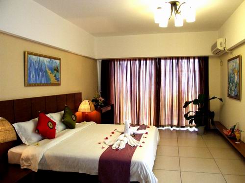 三亞玉海國際度假酒店緊鄰三亞市區(qū),背靠三亞灣新城,面向遼闊的南中國海,與著名的天涯海角、西島、南山佛教文化苑風(fēng)景區(qū)相毗臨,與佛光普照的108米南海觀音遙遙相望,依山傍海,景色秀麗。距市區(qū)僅5分鐘車程,距三亞鳳凰國際機(jī)場(chǎng)9分鐘車程,距天涯海角10分鐘車程,交通便捷,環(huán)境優(yōu)美。玉海國際度假公寓為客人提供24小時(shí)專職私人管家服務(wù),我們的私人管家是客人唯一面對(duì)的酒店服務(wù)人員,在客人入住酒店后,私人管家就成了客人的“家庭成員之一”,照顧他們的起居生活,幫助客人解決各種問題,處理投訴,并使客人在店期間能享受到更多的其它服務(wù)。